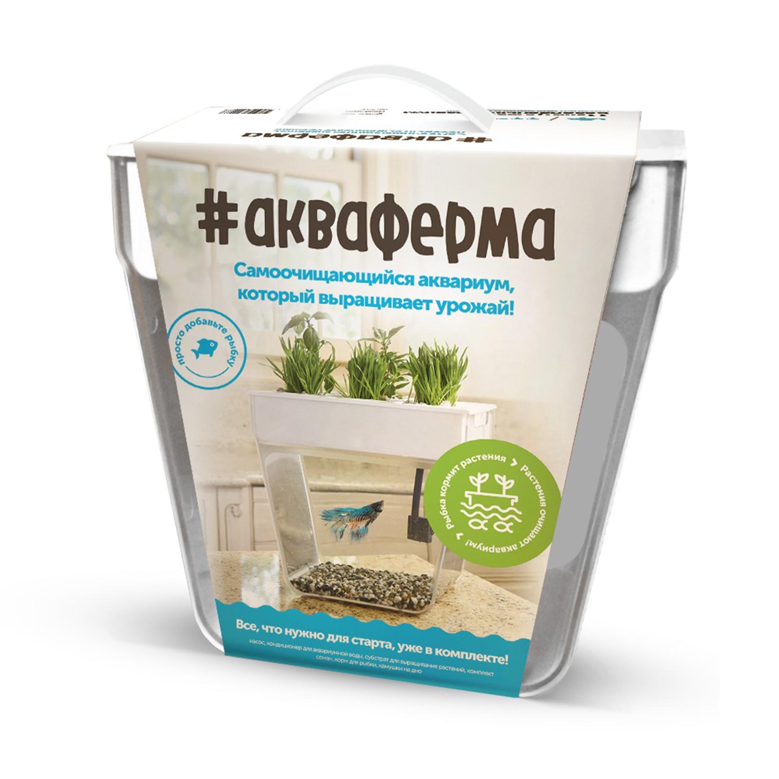 Акваферма представляет собой замкнутую экосистему, поддерживающую баланс между растениями и рыбкой. Эдакий самоочищающийся аквариум, который выращивает урожай. Это действительно мини-ферма, благодаря которой любой городской житель может обеспечивать себя свежей зеленью к столу. Вы выращиваете свой собственный урожай и одновременно наблюдаете за жизнью рыбки, а все заботы о чистоте ее аквариума берут на себя растения. Система регулирует сама себя. Акваферма производится в России. В набор Аквафермы входит все необходимое для создания полноценной эко-фермы. Просто добавьте рыбку!
