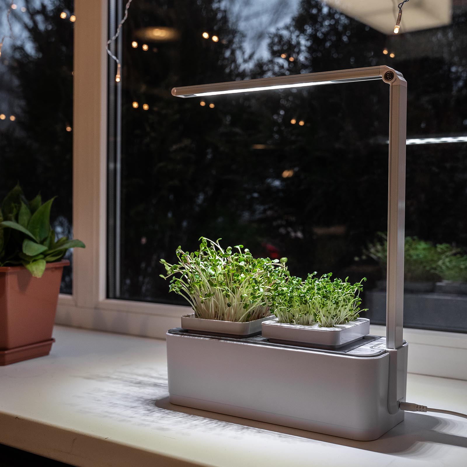 В основе прибора лежит принцип гидропоники — выращивание растений без использования земли. Поэтому никакой грязи в доме не появится. К тому же на воде и удобрениях цветы и растения всходят в три раза быстрее. Нужно лишь посеять семена, а затем наблюдать за ростом своего огорода. Лампа, которая идет в комплекте с устройством, даёт достаточно света — можно читать книгу, готовить или шить. Но основное ее предназначение — обеспечивать домашнюю плантацию светом, схожим со светом солнца. Лампа работает в нескольких режимах, в том числе есть и автоматический, имитирующий продолжительность летнего светового дня. Ее можно поднять выше, когда растения станут до неё дотягиваться. Смарт-сад оснащён электронной системой управления. Не нужно поливать растения и цветы каждый день, встроенный датчик сам подаст сигнал, когда им нужна будет вода. Безопасно и просто.